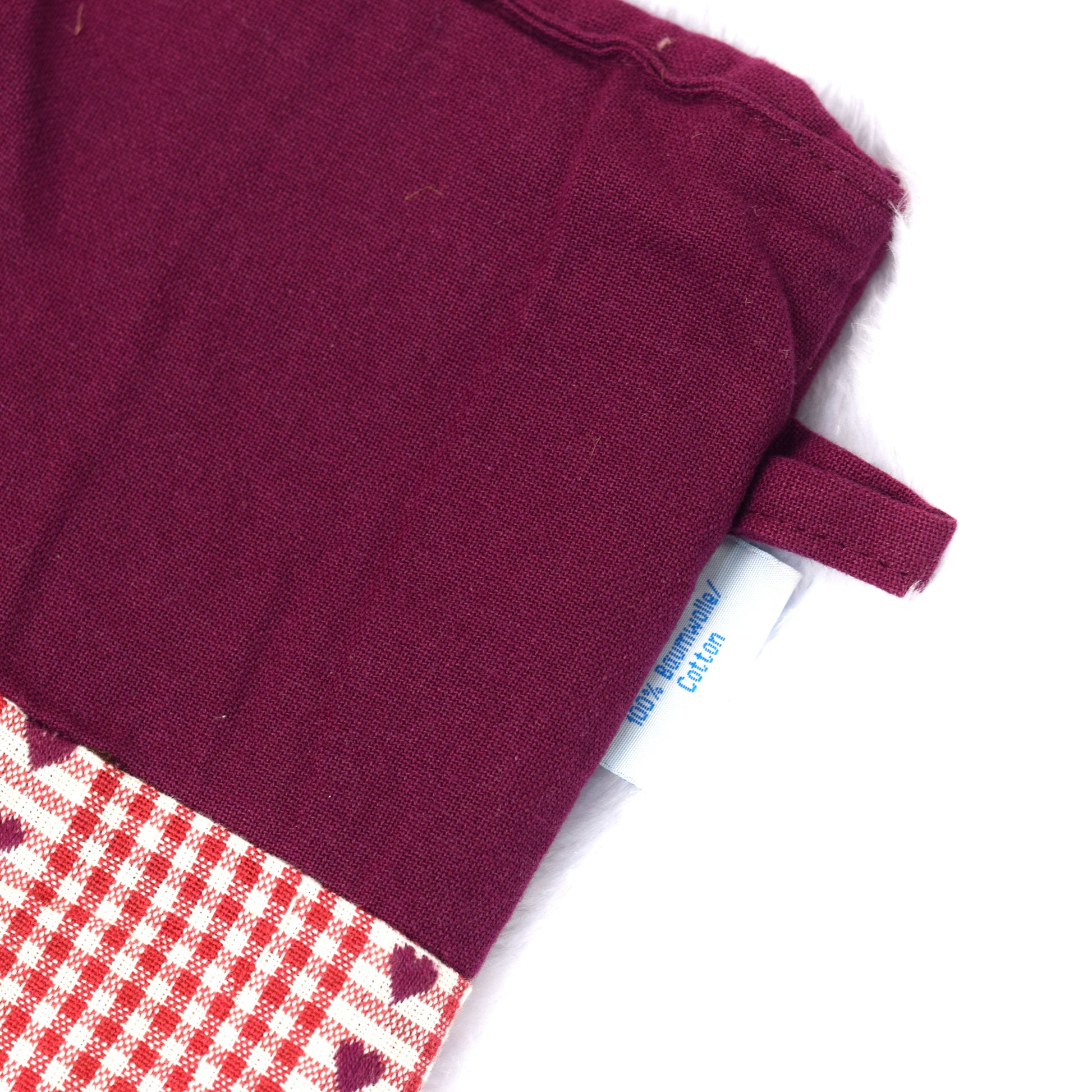 Β Bring the joy of Christmas to your home with this charming red and white cotton Christmas stocking. Crafted from 100% premium cotton, it features a classic gingham pattern with adorable heart details and a deep maroon cuff for a cozy, festive touch.
