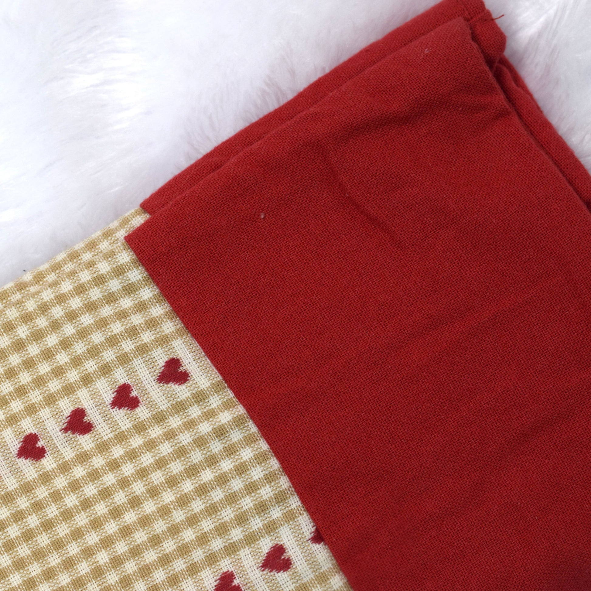 Add a touch of handmade charm to your holiday décor with this Christmas Elf Stocking. Designed in a whimsical curled-toe shape, it features a warm beige gingham fabric adorned with red heart motifs and a bright red cuff and pom-pom tip. Perfect for hanging on your Christmas tree, mantel, or wall, this stocking brings cozy festive vibes to your home. Fill it with candies, gifts, or surprises for a delightful holiday touch.