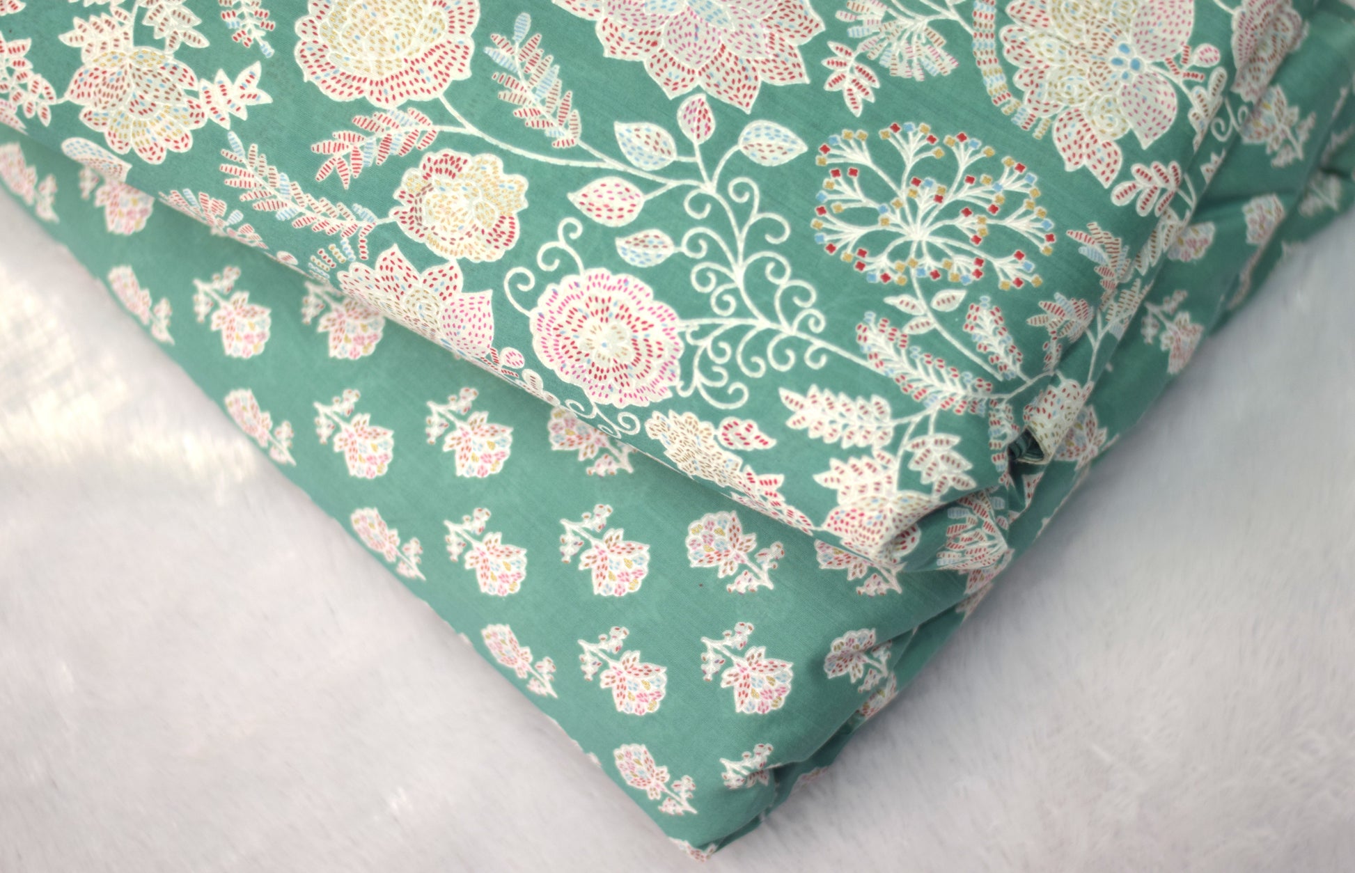 Elegant Green Floral Mix & Match Fabric Set – Top 2.75m & Bottom 2.25m