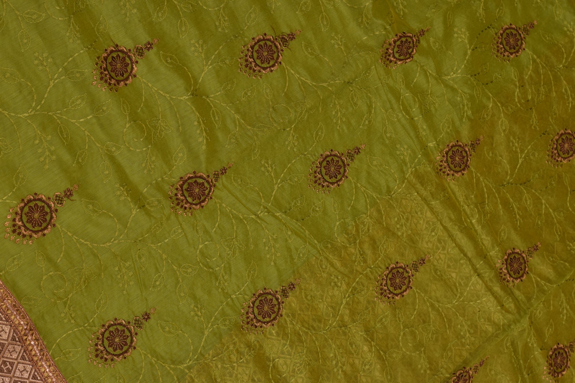 ✨ Design: Delicate floral embroidery in maroon and gold threadwork