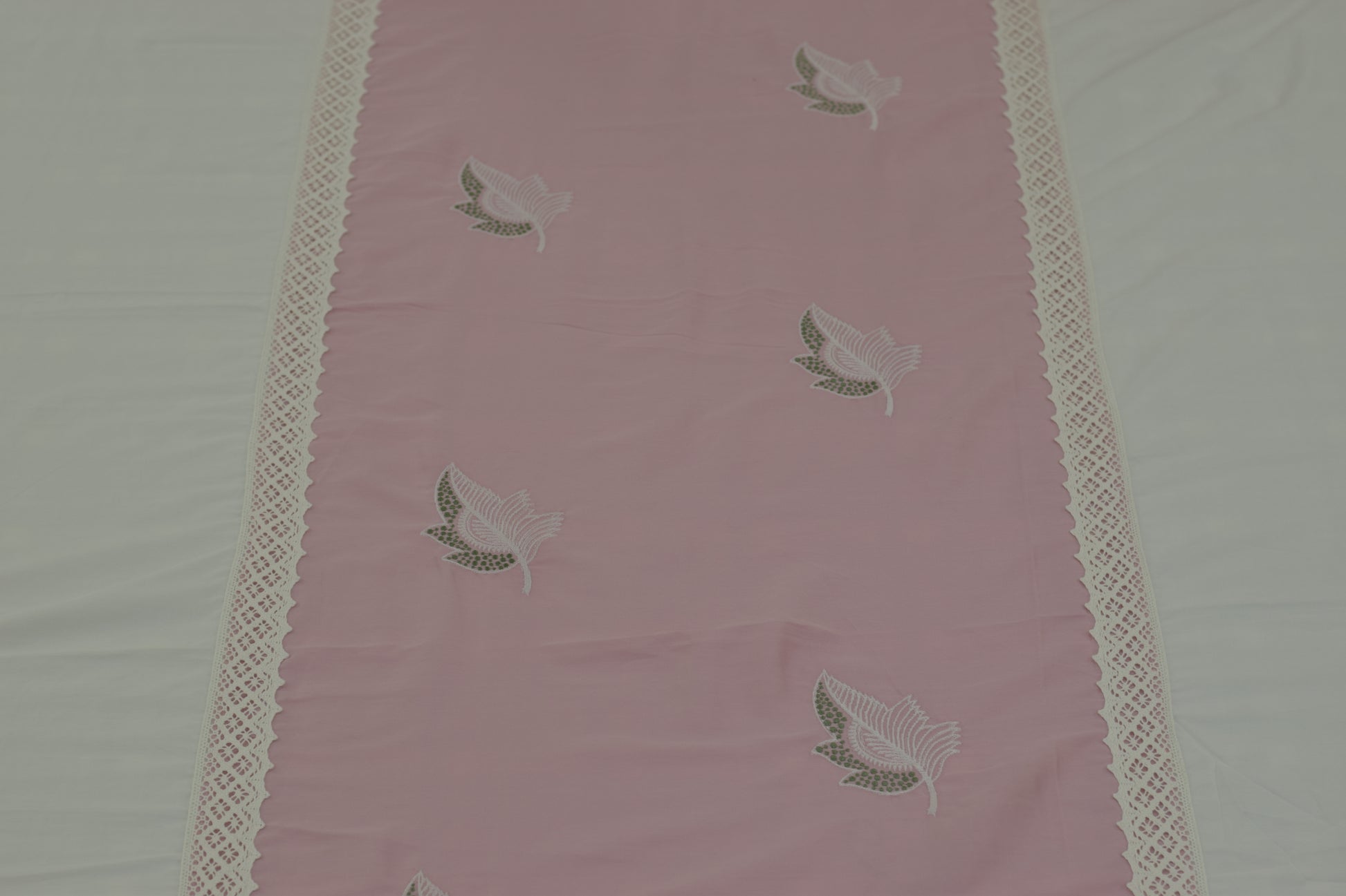 - 🕊️ Design: White base with pink accents and embroidered bird motifs