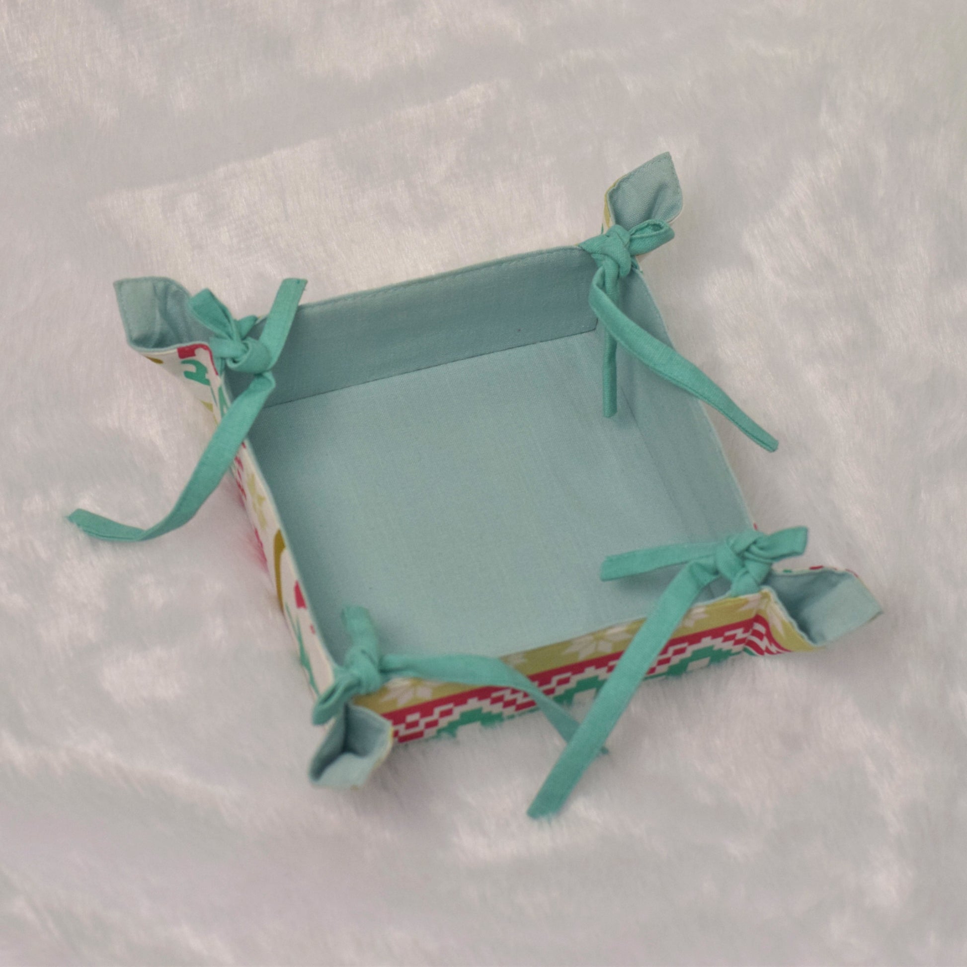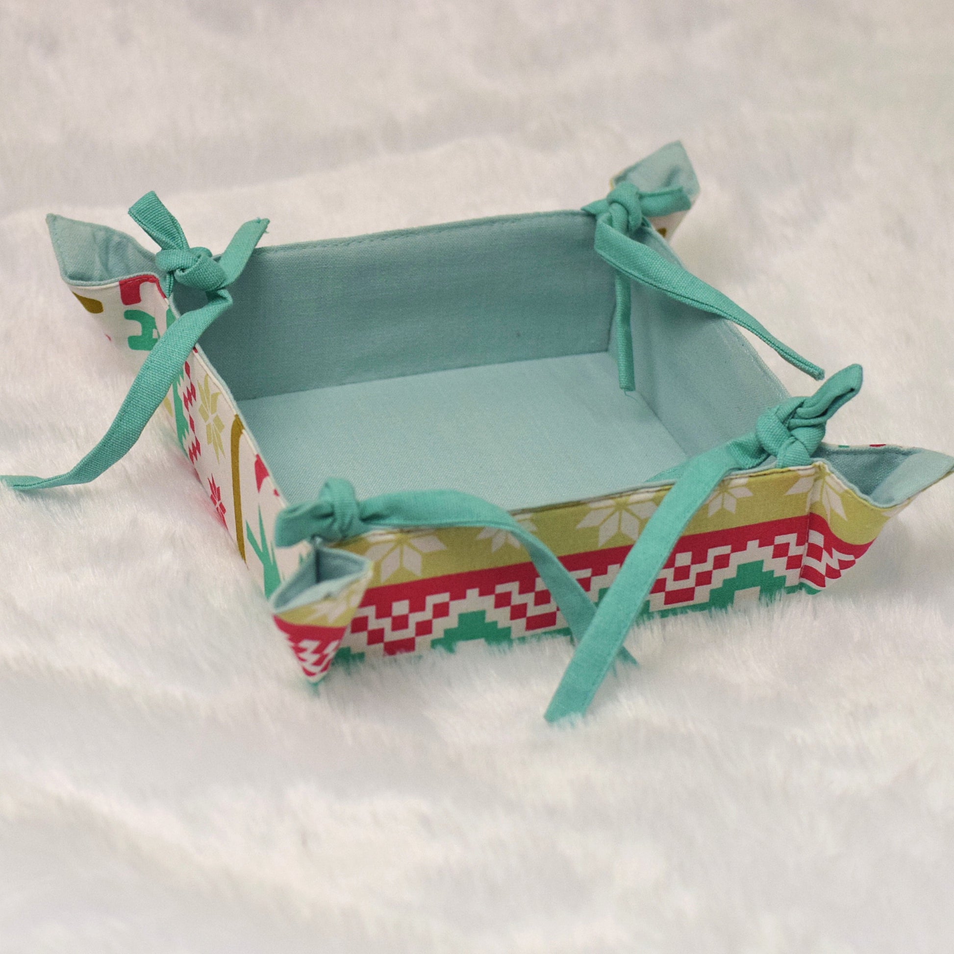Festive Pattern Fabric Bread Basket with Tie-Up Corners