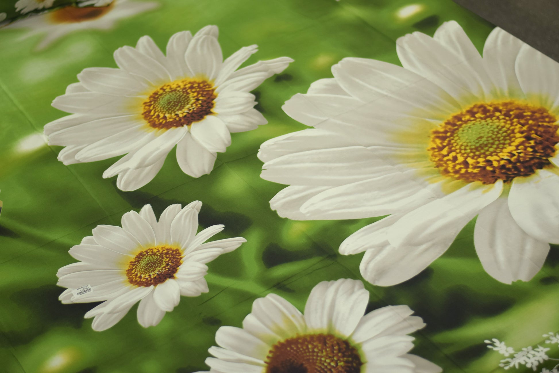 Vibrant Floral Design: A striking, photorealistic print of large and small daisies creates a fresh, "meadow-like" ambiance.