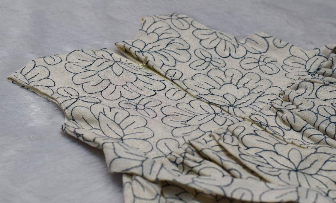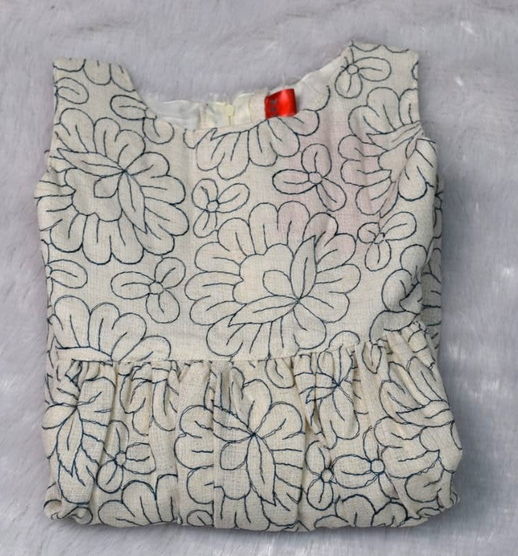 Dress your little one in comfort and charm with this beautiful girls floral printed frock. Made from soft, breathable cotton fabric, this sleeveless frock features an elegant all-over floral print in soothing neutral tones. The gathered waist gives a cute, flared look, while the back tie-up bow adds an extra touch of sweetness and ensures a comfortable fit.