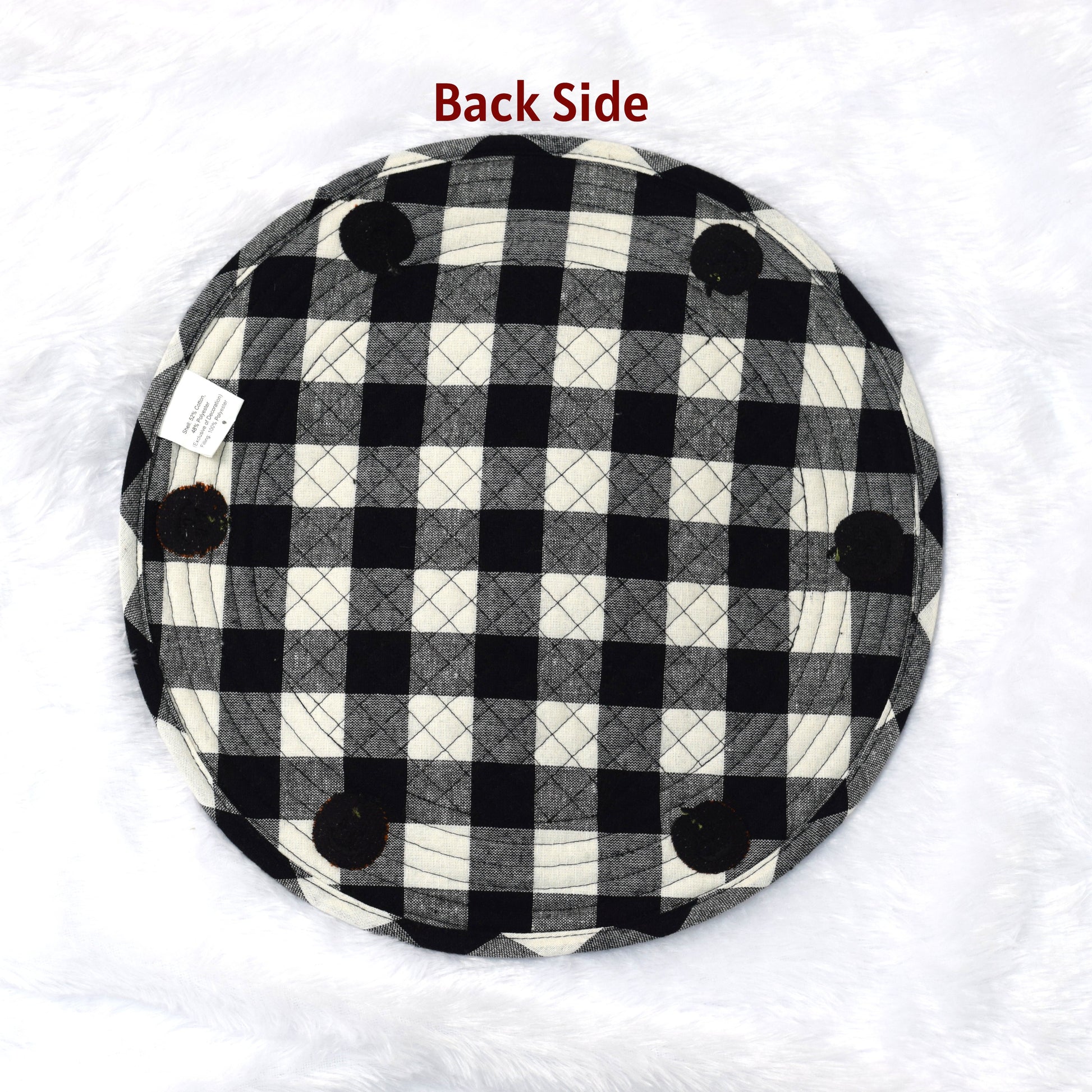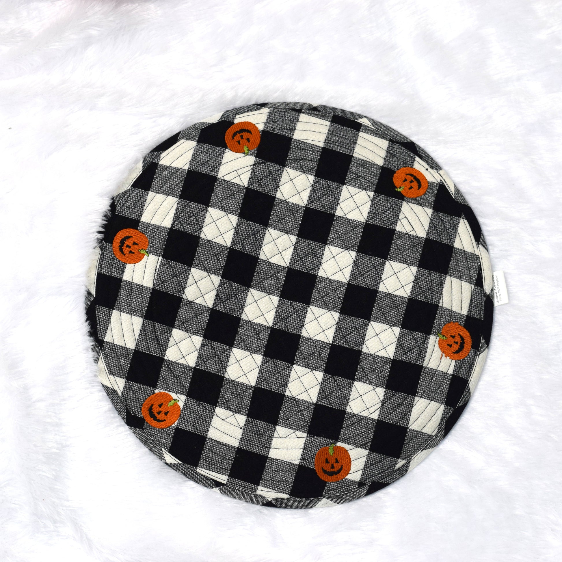 🎃Add a festive touch to your dining setup with this Halloween Pumpkin Checkered Round Table Mat. Crafted with a stylish black and white checkered pattern and accented with cute embroidered pumpkin designs, this mat brings a perfect blend of rustic charm and spooky fun. Ideal for Halloween parties or autumn décor, it protects your table while elevating your seasonal theme.