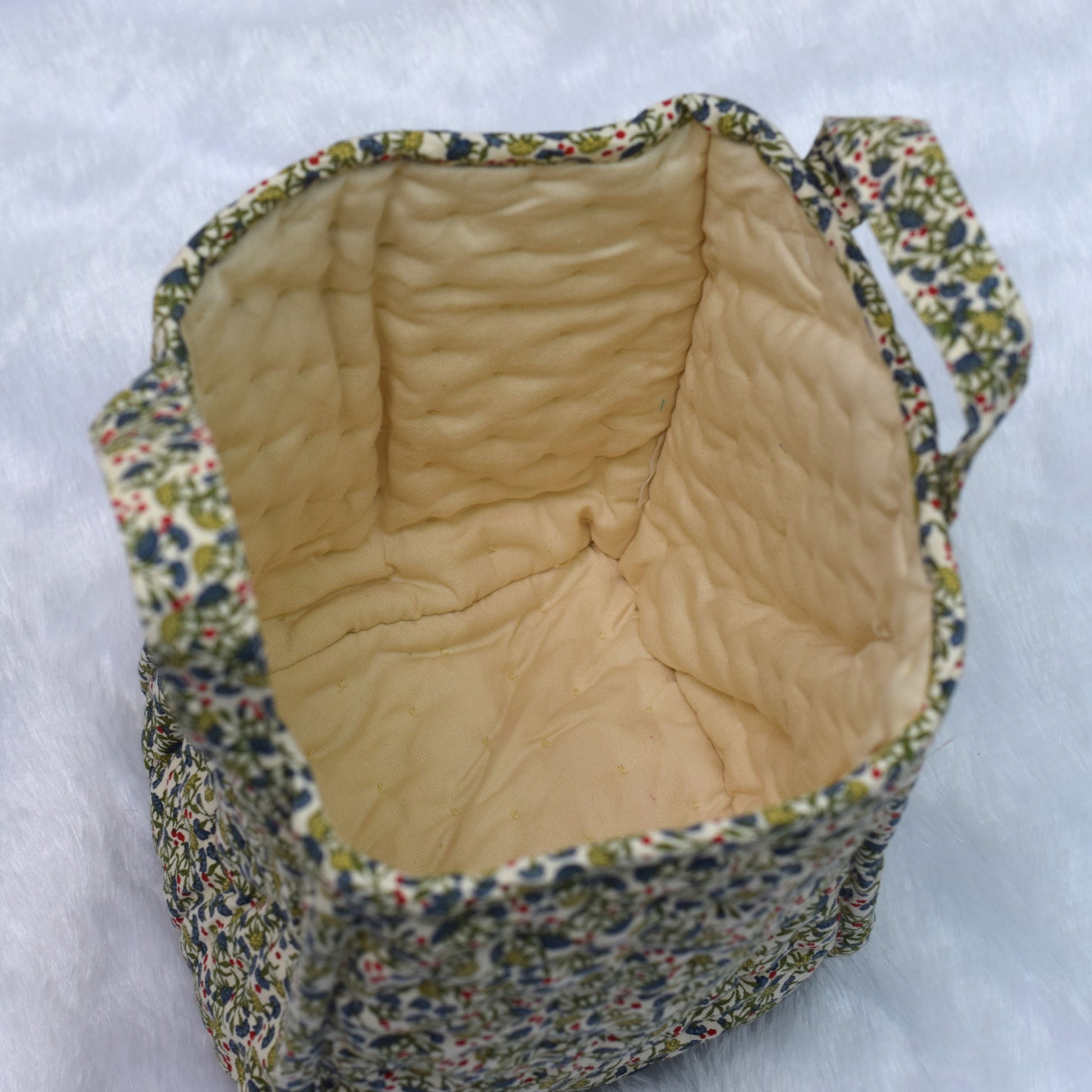 Handmade Quilted Fabric Storage Basket – Floral Print Organizer with Handles