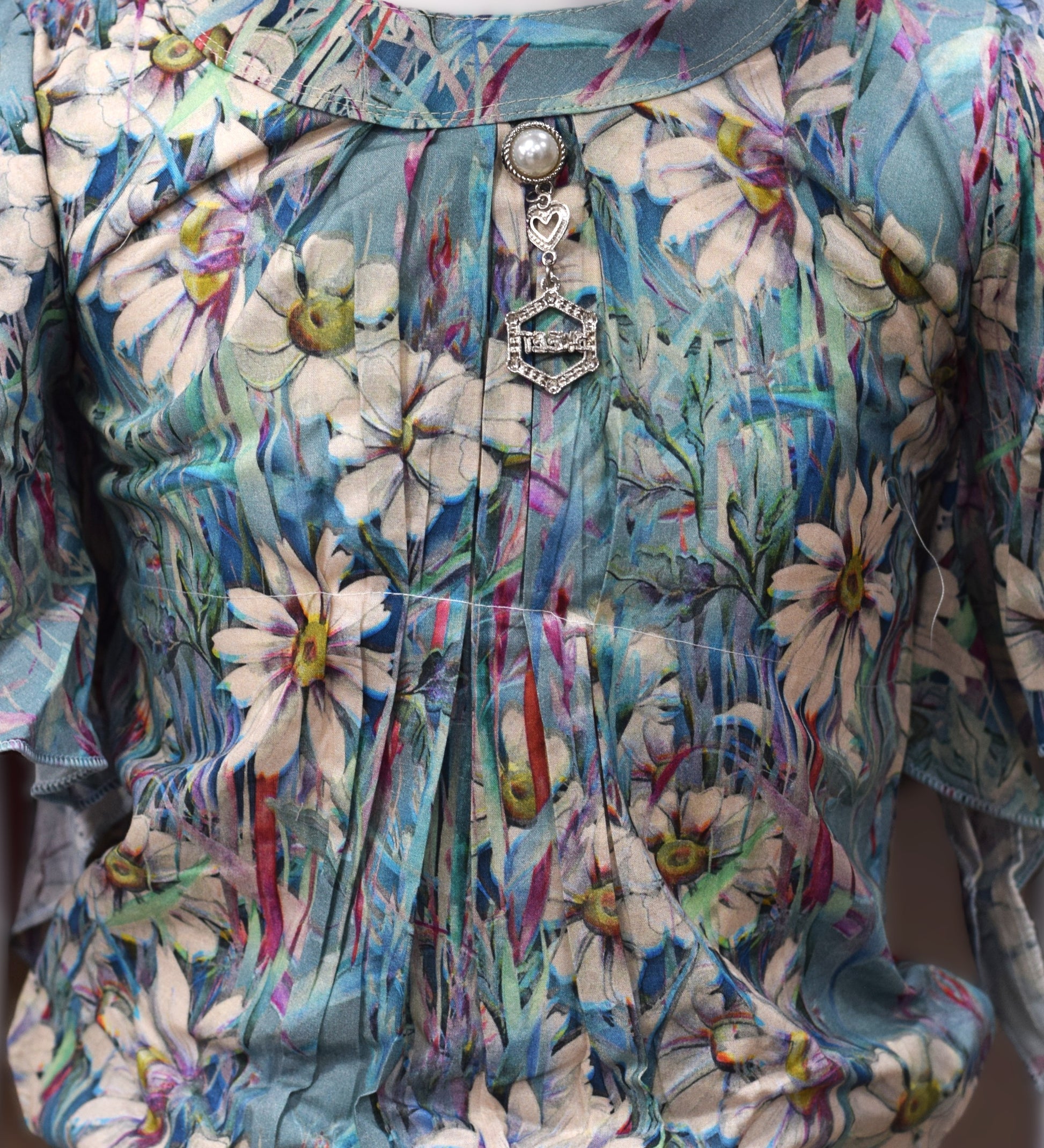Dress your little one in comfort and style with this adorable kids’ clothing set. The outfit includes a floral printed top with puff sleeves and charming pleated details, paired with beige denim shorts featuring a playful patch design. Perfect for playtime, outings, or casual wear, this set is both trendy and comfortable.