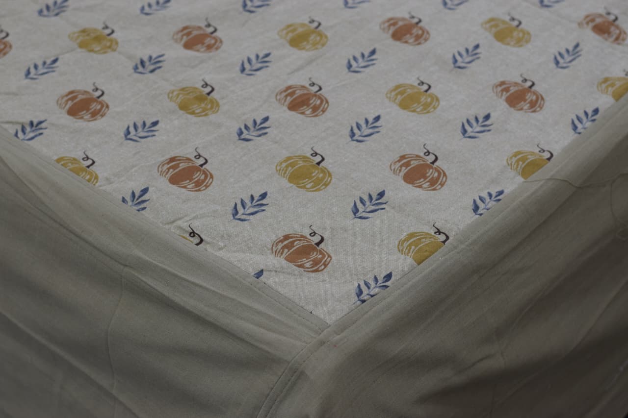 King Size Cotton Bed Spread with Pumpkin & Leaf Print – Soft & Elegant Design