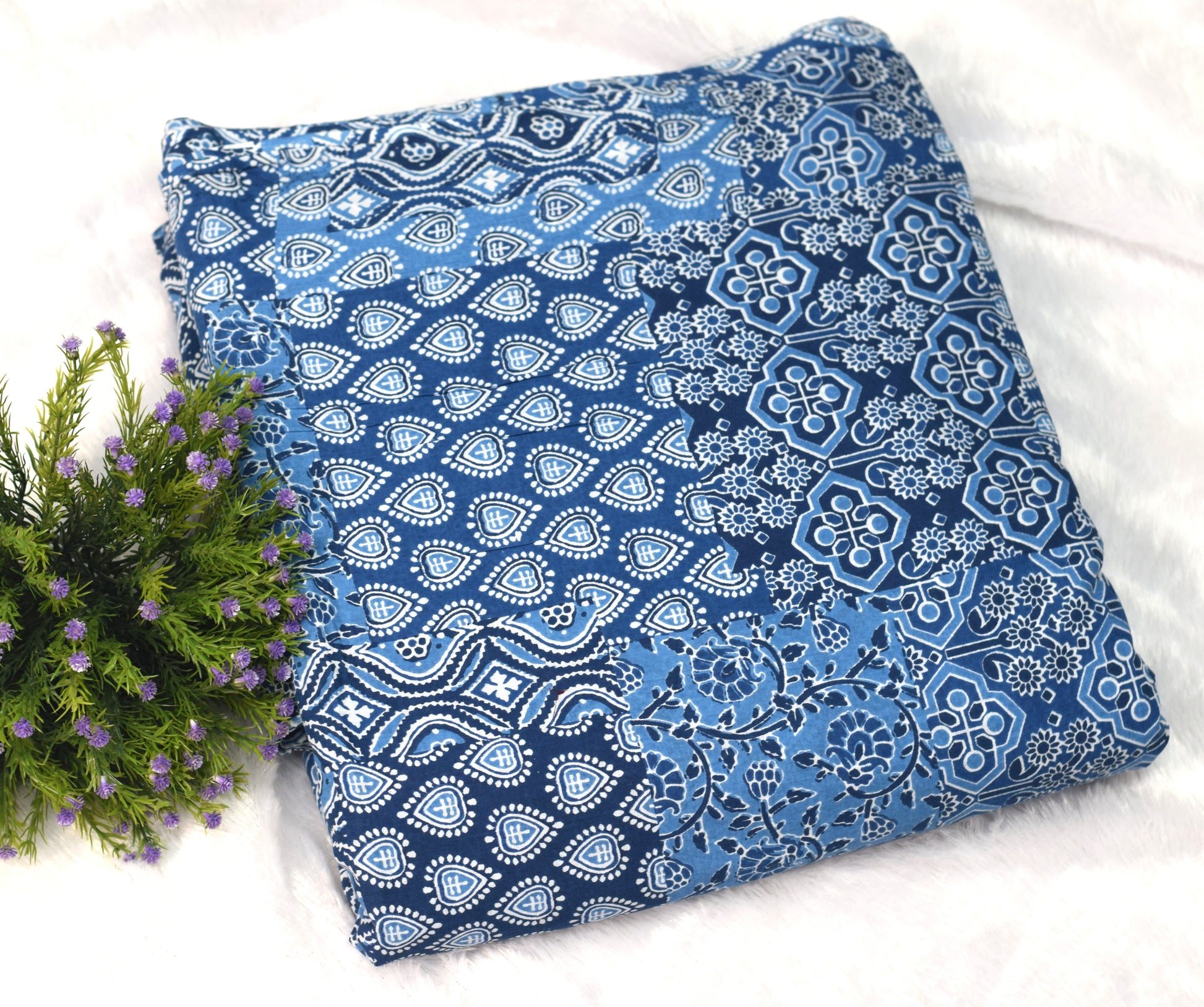 Premium Soft Cotton Churidar Material – Indigo Block Print | 3 Meter | 44 Inch Width