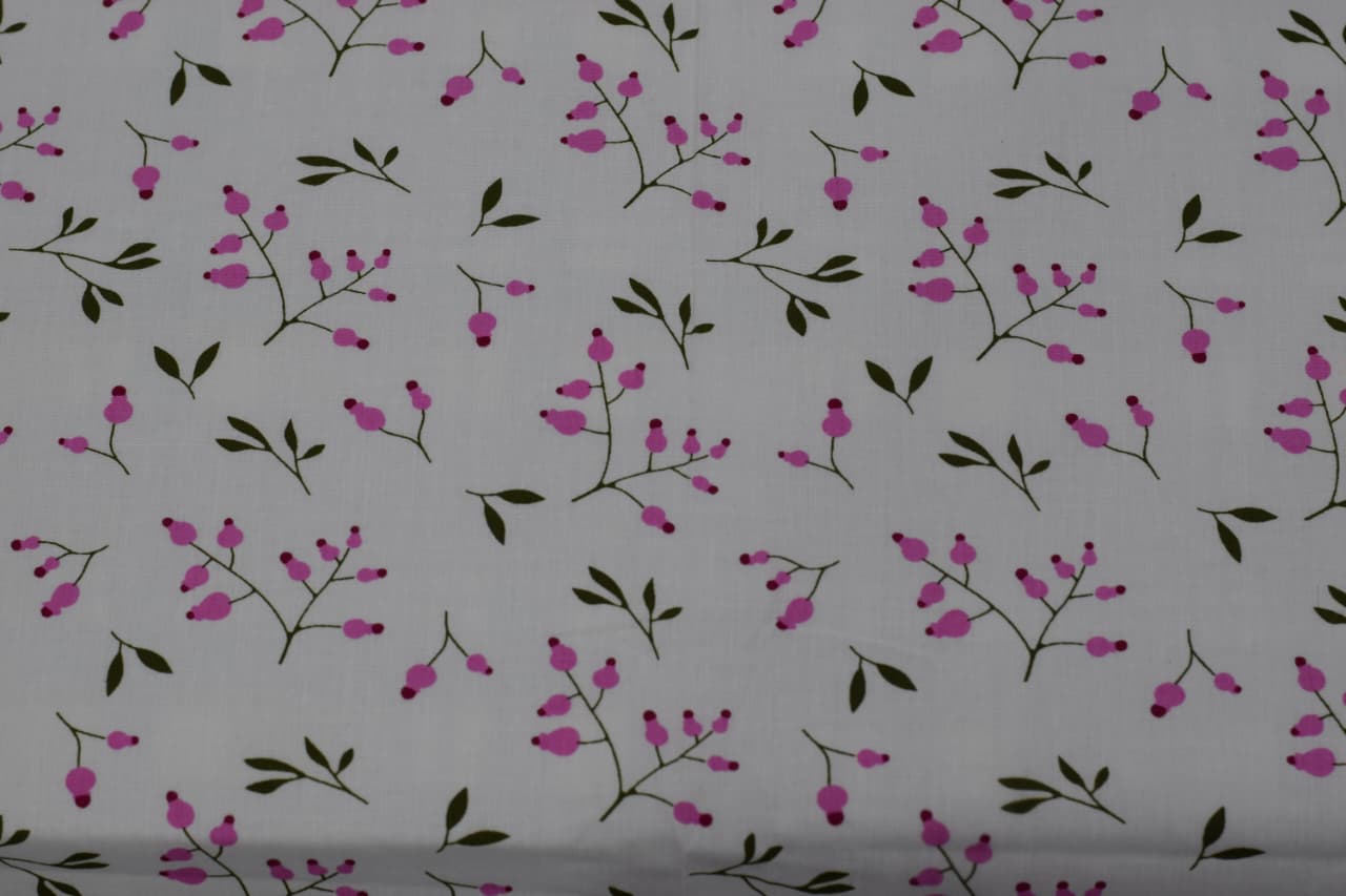 Design: All-over floral print (pink blossoms on white base)