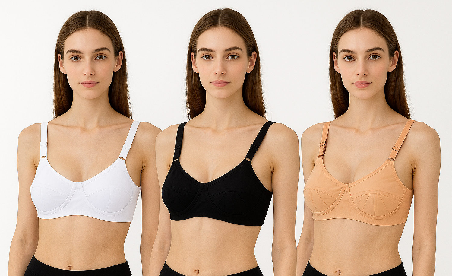 Set of 3 Saree Bras – White, Black &; Beige | Everyday Comfort