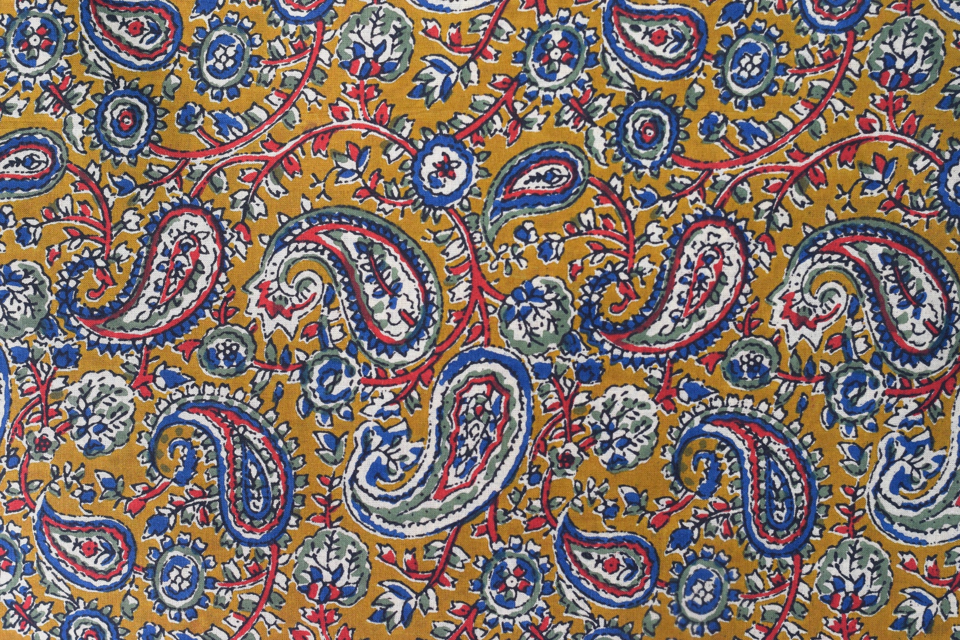 Soft Cotton Churidar Material – Mustard Paisley Print | 3 Meter, 44-Inch Width