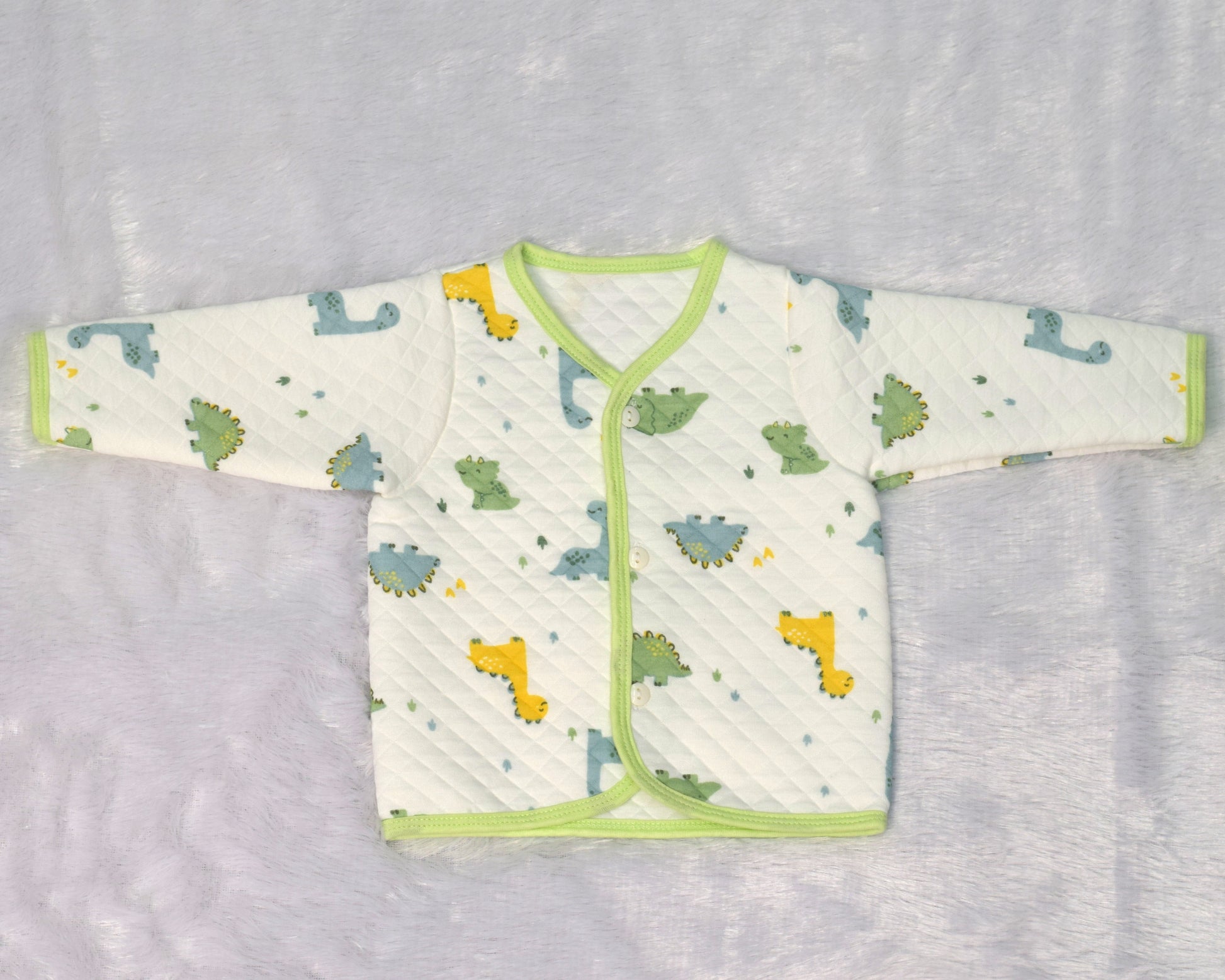 Soft Quilted Dinosaur Print Newborn Jhabla – Front Open Baby Shirt (3-6 Months)