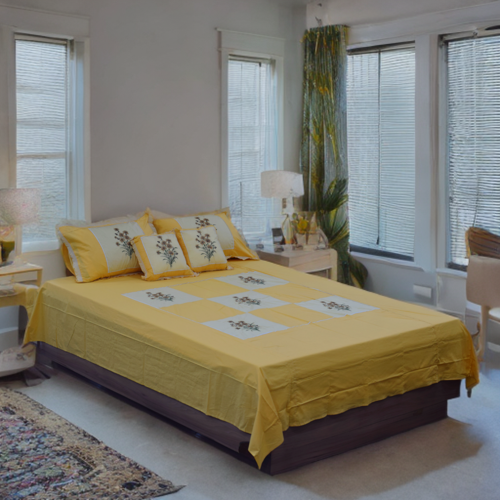 Bring elegance and comfort to your bedroom with this beautifully designed Queen Size Yellow Floral Embroidered Bedsheet Set. Crafted from soft, high-quality fabric, this set features stunning floral embroidery patches that add a classy and timeless charm to your space.