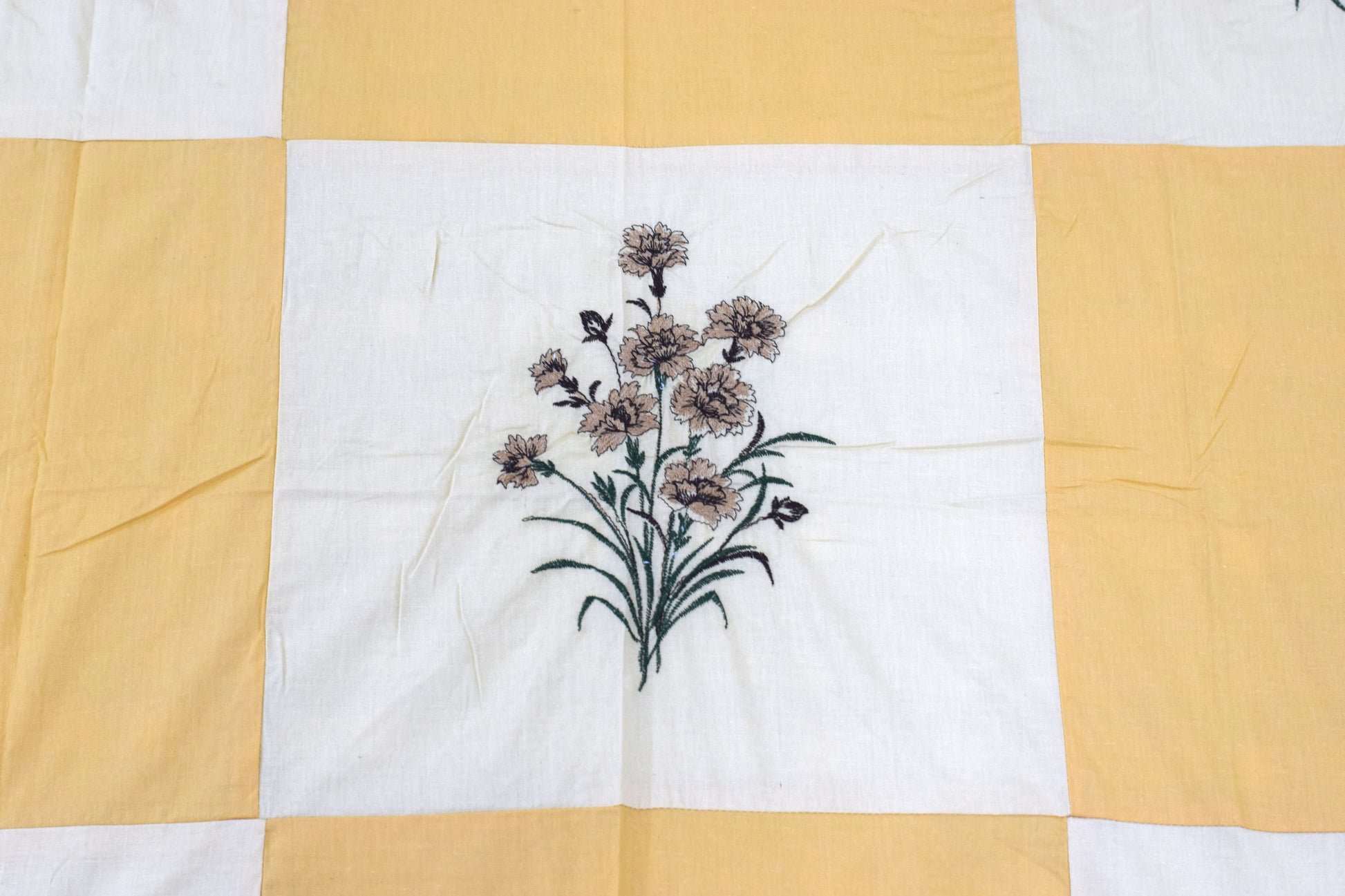 Yellow Floral Embroidered Queen Size Bedsheet Set with 2 Pillow Covers & 2 Cushions
